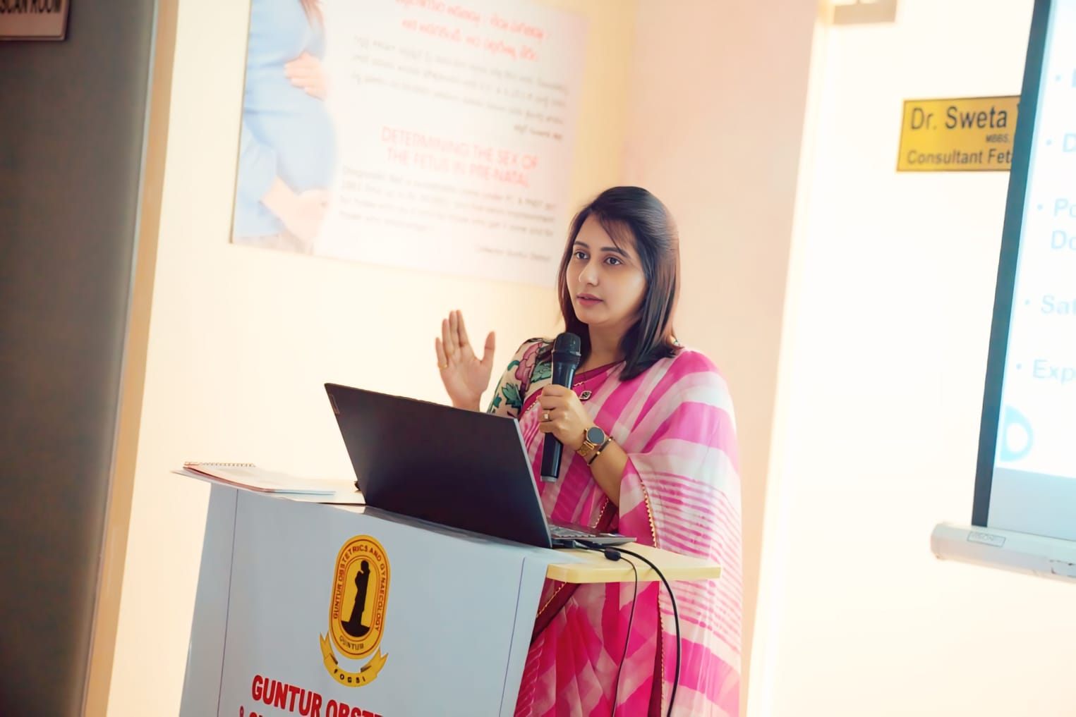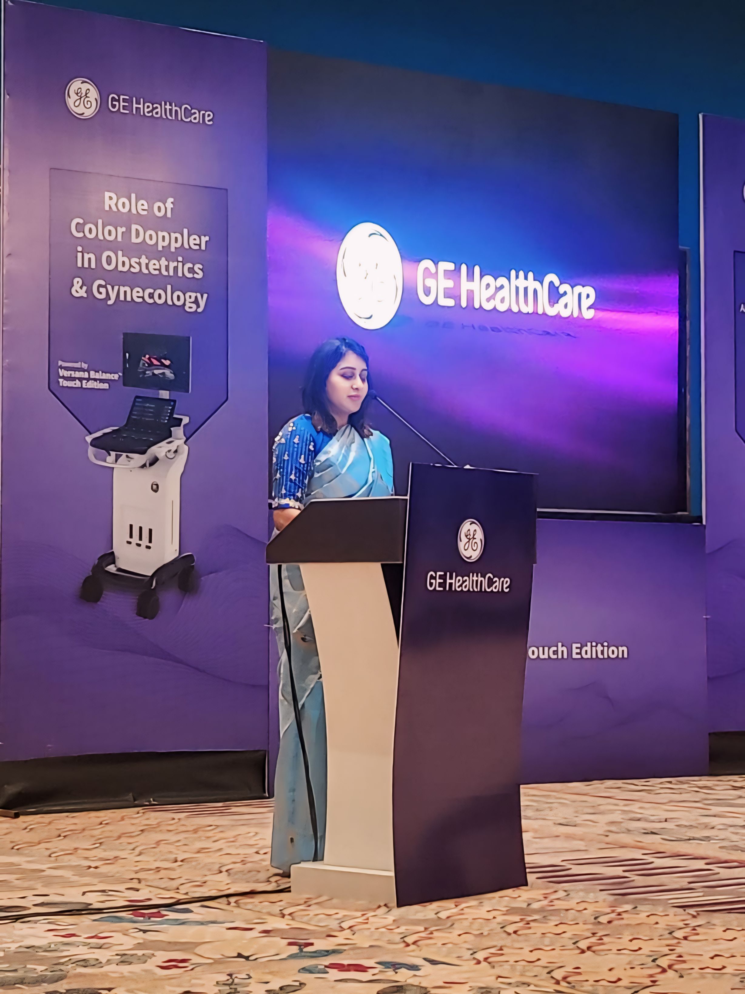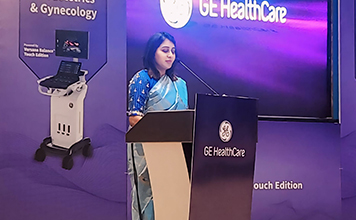 Addressing a gathering of obstetricians hosted by GE healthcare systems at ITC hotel,